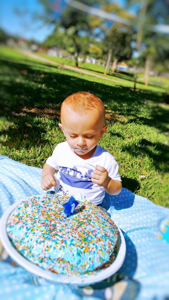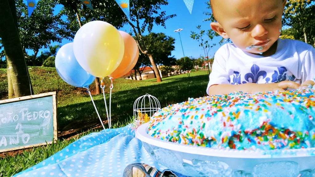 Ao pesquisar melhor descobri que o nome deste ensaio de pré aniversário de 1 e até de 2 anos se chama Smash The Cake,e teve origem nos EUA, traduzido para o nosso português é ”esmagar o bolo”.