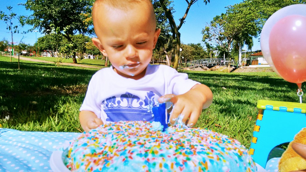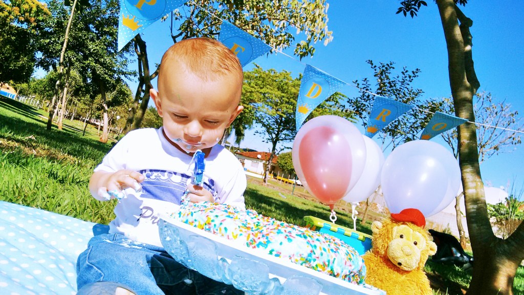 Algumas famílias preferem fazer o Smash em estudio,talvez por não conhecer uma área verde(serve um sítio,uma quadra de futebol..),por cair o aniversário em períodos de muita chuva ou frio,enfim..mas na minha opinião,principalmente para produções caseiras,ao ar livre além de mais bonito fica mais fácil por causa da iluminação natural.Nada como o Sol para uma foto perfeita!