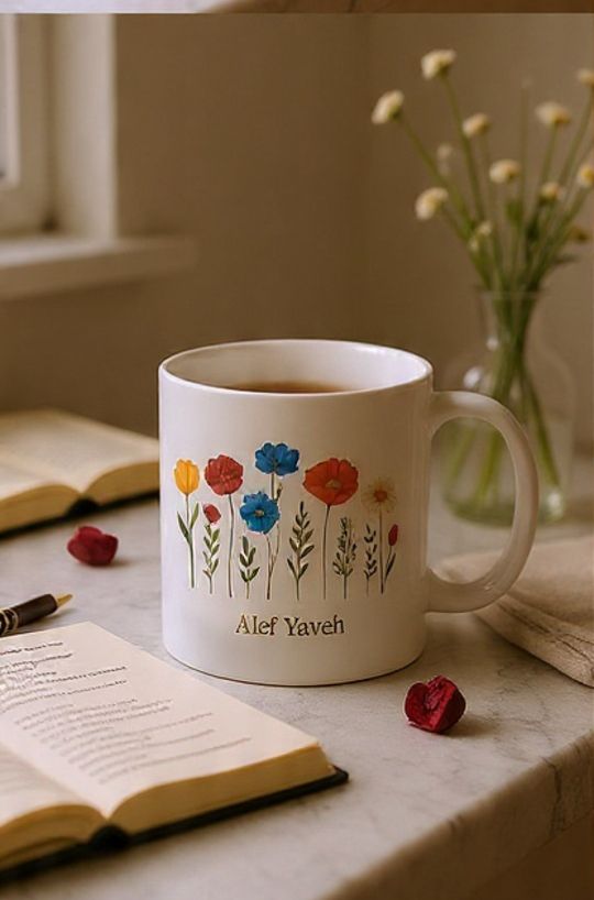Canecas Alef Yaveh, óculos e garrafinhas d’agua AleB em estoque e a venda.